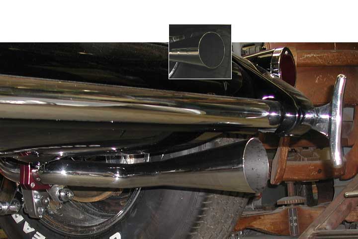 Exhaust tips are fabricated stainless steel tapers.
